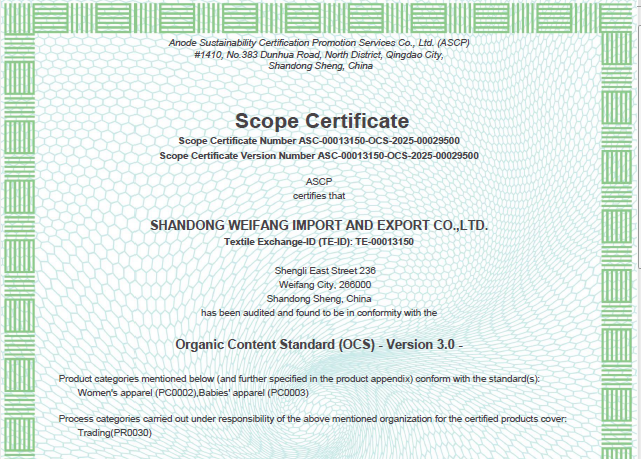 公司自營和代理服裝、食品、五金、化工、機電等各類商品及技術的進出口業(yè)務,公司有專門的生產、加工基地,并通過了Oeko - Tex Standard 100、GRS、OCS、RCS、USCTP等多項認證,可以按客戶要求設計生產,同時承辦中外合資經(jīng)營、合作生產、開展“三來一補”以及技術輸出、易貨、邊境貿易等業(yè)務。公司產品出口到日本、法國、俄羅斯等50多個國家或地區(qū)。